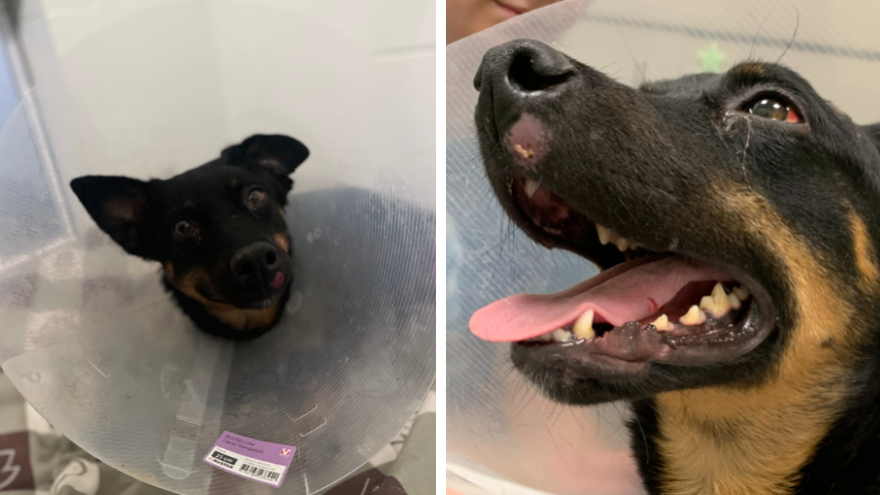 As a mix of herding breeds, we know Bannock is highly intelligent and will need a lot of simulation once she has recovered. This makes her calm patience even more impressive. It’s as if she understands that she needs to rest her body so it can heal. She’ll remain on strict kennel rest until her surgery next week.