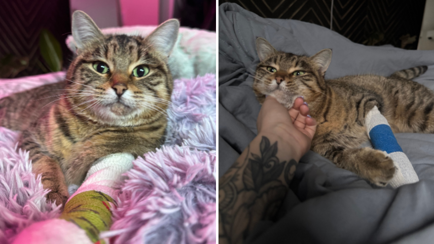 Tiptoes has been the perfect patient. She loves to chat, always greeting her foster mom with a chirpy meow. Even with her leg in a splint, this curious girl would stand up on her back legs like a meerkat, trying to see what her people were up to. She’s the sweetest little cat, and all she wants is to be near her people. Could you share your love with Tiptoes to help her get closer to a pain-free future?