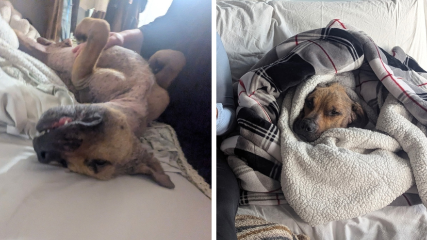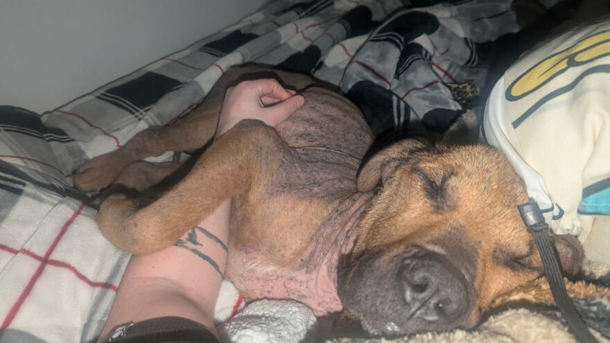 With no fur to keep him warm, this sweetheart loves being wrapped up in soft blankets. He has a cozy jacket for his walks and absolutely loves spending time outdoors sniffing and exploring. When it’s time for his medications (or even bath time), he has been a perfect boy, patiently accepting the care he seems to know he needs. As his skin slowly heals and he gains more weight with the help of a special feeding plan, his medical team will start discussing oral surgery to remove his broken tooth. Until then, Rupert is soaking up all the love and comfort he can in his foster home.