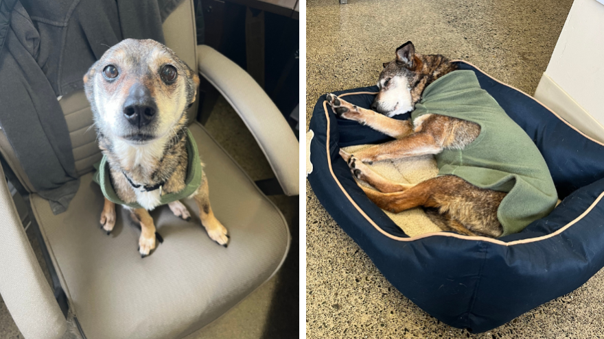 Despite everything this little lady has endured, she is still so full of love. She loves to be on a warm lap. She was so food focused when she arrived, she would sneak bites from lunches and even explore garbage cans for any morsel! With loving care, she’s gaining her strength, and with that comes with more energy.