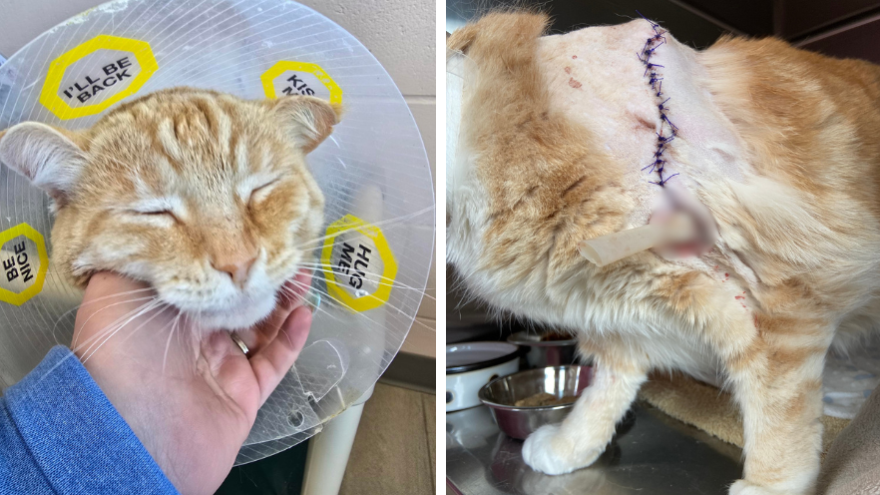 Charlie was rushed to an emergency vet for immediate attention. In addition to his fresh wounds, his medical team discovered an abscess, likely from a previous attack. His wounds were carefully cleaned and clipped, the abscess was drained, and he was started on antibiotics. He also had tests to check for infectious viruses. Charlie stayed overnight at the clinic for close monitoring. Now back at the animal centre, he is receiving pain medication and resting in a safe space as he heals over the coming weeks.