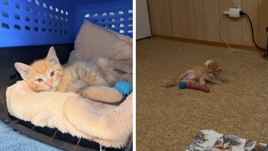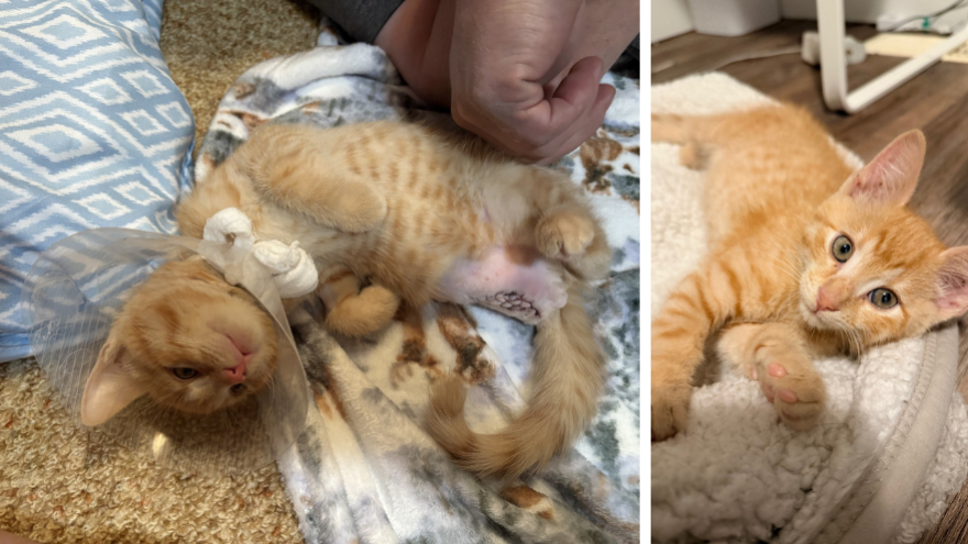 At just 8 weeks old, this little ginger kitten faced a serious fracture to his back leg.